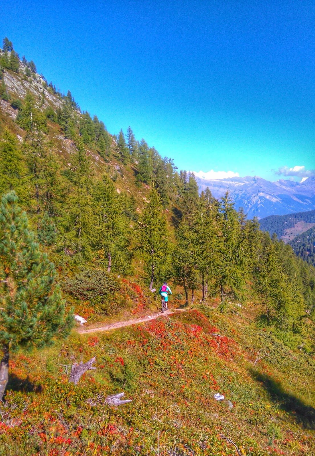Du côté de Pila il y en a pour tout les goût. Il existe un Bike Park, parfais pour s'échauffer mais on peut vite s'attaquer à la descente de 13km qui descend sur Aoste. En Aout un télésiège est ouvert sur la partie haute de la station et permet d'accéder a un tracé pure Enduro de 11km. Si on enchaine jusqu'à la ville c'est 23km de single qui s'offre à nous. Bref il y en a pour tout les goût.